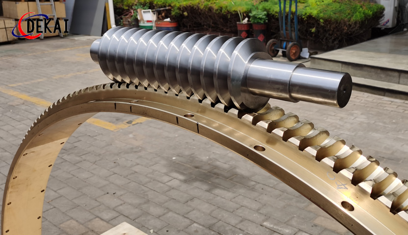 分度精度高,側(cè)隙可調(diào)整至0.01~0.03Mmm;齒面接觸穩(wěn),不會改變中心距。調(diào)整標(biāo)準(zhǔn),方便可靠。裝配靈活,裝配時,用調(diào)整環(huán)來獲得合適的嚙合側(cè)隙。使用中如果因為磨損導(dǎo)致傳動間隙增大,只要調(diào)整一下蝸桿的軸向位置,可以使蝸桿蝸輪傳動副恢復(fù)到原來的精度,不需要更換新的蝸桿,蝸輪,比較實用。蝸桿材質(zhì)采用40Cr,42CrMo、38CrMoAl合金鋼。蝸桿采用錫青銅ZCuSn10Pb1離心澆鑄,具有高強(qiáng)度耐磨性。