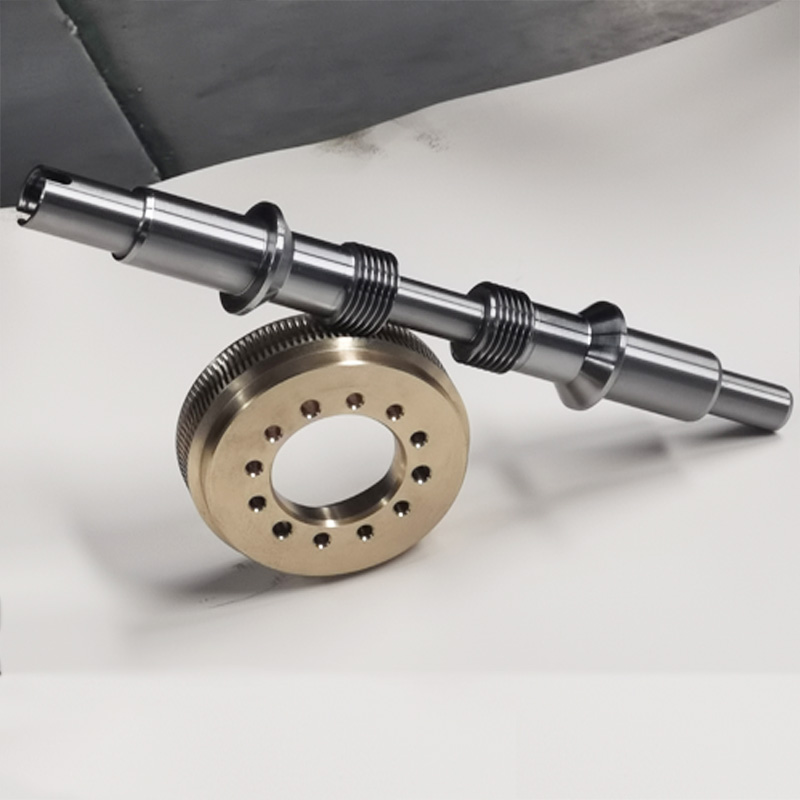 蝸輪系統(tǒng):材質(zhì):蝸輪特殊高強(qiáng)力鋁青銅合金;蝸桿:38CrMoAl合金鋼,正常化后滲碳HRC60以上。