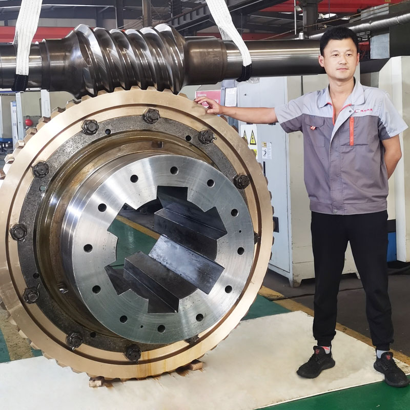 平面二次包絡環面蝸桿傳動于1971年發明的一種新型蝸桿傳動裝置,這種蝸輪副具有以下特點:蝸輪齒面硬度高(HRC58),表面經滲氮后精磨削而成,精度高,表面光滑。加工過程與成形原理吻合度高,傳動精度高。蝸桿與蝸輪的嚙合為多齒接觸,每齒為瞬時雙線接觸,齒面接觸區可達百分之七十以上。嚙合面的綜合曲率半徑大。接觸線與相對速度方向夾角大,動壓油膜形成及保持性好。此種蝸輪副承載能力大,傳動效率高,耐磨損,可廣泛應用于冶金,礦山,化工,建筑,橡塑,船舶等各種行業中。