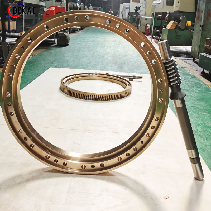通常,調(diào)整蝸桿蝸輪側(cè)隙的方法是改變其組裝距離,組裝后若想改變組裝距離,需要對齒輪箱等做大幅度的修正作業(yè)。但是,如果使用雙導(dǎo)程蝸桿蝸輪的話,可以不改變齒輪箱的組裝距離即可調(diào)整側(cè)隙,所以可使組裝及維修變得非常方便。因為雙導(dǎo)程蝸桿蝸輪是特殊的產(chǎn)品,采用時先閱讀德凱使用說明書。
