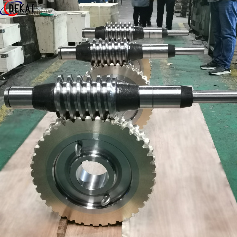 分度精度高,側隙可調整至0.01~0.03Mmm;齒面接觸穩,不會改變中心距。調整標準,方便可靠。裝配靈活,裝配時,用調整環來獲得合適的嚙合側隙。使用中如果因為磨損導致傳動間隙增大,只要調整一下蝸桿的軸向位置,可以使蝸桿蝸輪傳動副恢復到原來的精度,不需要更換新的蝸桿,蝸輪,比較實用。蝸桿材質采用40Cr,42CrMo、38CrMoAl合金鋼。蝸桿采用錫青銅ZCuSn10Pb1離心澆鑄,具有高強度耐磨性。