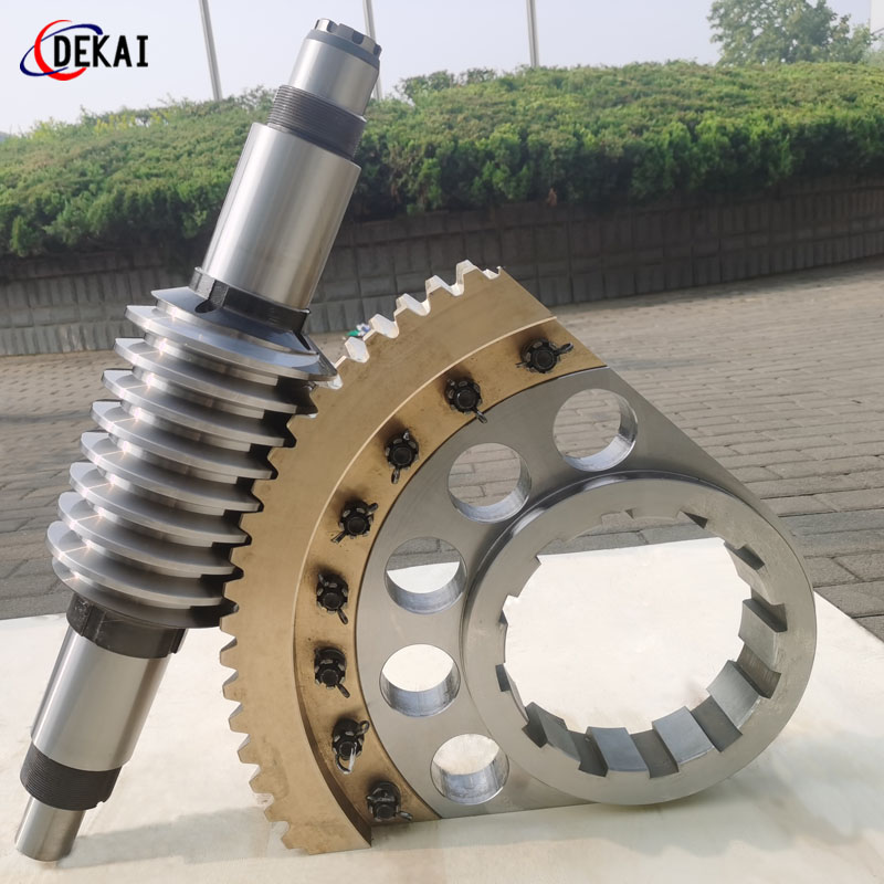 分度精度高,側隙可調整至0.01~0.03Mmm;齒面接觸穩,不會改變中心距。調整標準,方便可靠。裝配靈活,裝配時,用調整環來獲得合適的嚙合側隙。使用中如果因為磨損導致傳動間隙增大,只要調整一下蝸桿的軸向位置,可以使蝸桿蝸輪傳動副恢復到原來的精度,不需要更換新的蝸桿,蝸輪,比較實用。蝸桿材質采用40Cr,42CrMo、38CrMoAl合金鋼。蝸桿采用錫青銅ZCuSn10Pb1離心澆鑄,具有高強度耐磨性。