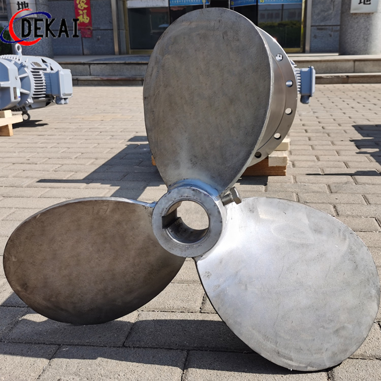 螺旋槳葉一般為推進式攪拌器,容積循環(huán)速率大,在工作中能使流體在隨槳葉旋轉(zhuǎn)的同時進行上下翻騰,即容易使低粘度流體流動處于湍流狀態(tài)。由于在工作時主要是軸向推力,對流體作用的剪力很小,這種攪拌器難以使高粘度流體處于流動狀態(tài),所以不能是高粘度流體混合。推進式攪拌器的轉(zhuǎn)速一般在60-200內(nèi),這種攪拌器適用于低粘度流體的混合。特殊葉片槳式攪拌器是一種漿式旋轉(zhuǎn)面接進容器的橢圓面,槳葉面與旋轉(zhuǎn)軸垂直面城45°角起到刮板作用,多為低轉(zhuǎn)速運行,可在過流或?qū)恿鲄^(qū)操作。渦輪式攪拌器一般為六直葉徑流型攪拌器,轉(zhuǎn)速范圍大,使用范圍廣,具有高剪切擴散能力。在攪拌槽內(nèi)形成循環(huán)對流,適用于剪切分散操作,用于一般的固體溶解,反應(yīng),傳熱,如花結(jié)晶,固體懸浮等操作。彎葉圓盤渦輪式攪拌器基本同平直葉圓盤渦輪,彎槳葉具有較大的后傾角,動力消耗低,槳葉不宜磨損,適用于分散吸收固液懸浮操作等。斜葉圓盤渦輪的槳葉具有一個傾角,有一定的軸向流,循環(huán)性能好,剪切力低于直葉圓盤渦輪,螺距葉圓盤渦輪的槳葉有一個較大的后退角,動力消耗低,特別適合于非均相混合,分散。常用的三葉推進式攪拌器是軸流型攪拌器,剪切性能低,采用擋板或?qū)Я魍矂t軸向循環(huán)更強。排出性能明顯提高,因為循環(huán)能力強,動力消耗低,在大容量均相,混合過程中具有一定的優(yōu)勢,在低粘度液體傳熱,反應(yīng),固液比小時的懸浮,溶解等過程中應(yīng)用廣泛。