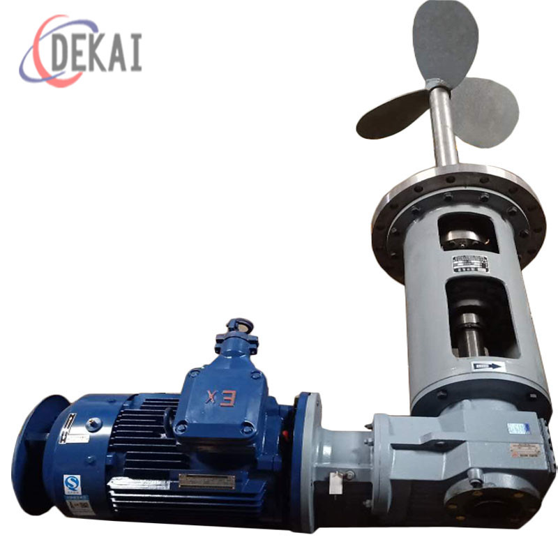 攪拌設(shè)備可以從各種不同的較大進(jìn)行分類,如按工藝用途分、按攪拌器結(jié)構(gòu)型式分或按攪拌裝置按安裝型式分等,以下僅就攪拌裝置的各種安裝型式進(jìn)行分類說(shuō)明。立式容器中心攪拌:將攪拌裝置安裝在立式攪拌設(shè)備筒體的中心線上,驅(qū)動(dòng)方式一般為皮帶傳動(dòng)和齒輪傳動(dòng),用普通電機(jī)直接聯(lián)接或減速機(jī)直接聯(lián)接。從功率方面看,可從0.1kw到數(shù)百千瓦。但在實(shí)際應(yīng)用中,常用的功率為0.2~22kw,有人統(tǒng)計(jì)這種反腐為內(nèi)的電機(jī)數(shù)量約占電機(jī)總數(shù)量的50%。由于設(shè)備的大型化,超過(guò)400kw的大型攪拌設(shè)備也出現(xiàn)了。一般認(rèn)為功率3.7kw以下為小型,5.5~22kw,為中型。轉(zhuǎn)速低于100r/min為低速。槳葉的形狀,根據(jù)用途可以考慮各種各樣的組合方式,以三葉推進(jìn)式、渦輪式為主體,而組合各種型式,軸封以調(diào)料函密封的比較多,但對(duì)于真空及承受壓力比較高的,要采用機(jī)械密封。中、小型立式容器攪拌設(shè)備,在國(guó)外多少已標(biāo)準(zhǔn)化。轉(zhuǎn)速為300~360r/min,電機(jī)功率大約為0.4~15kw的范圍,用皮帶或齒輪一級(jí)減速。對(duì)于立式容器大型攪拌設(shè)備的攪拌器直徑一般都很大,所傳遞的扭矩很大,而且在減速機(jī)的齒輪制造上以隨著軸及槳葉的大型化,而使軸承、軸封裝置的制造等均收到限制。因而大型立式容器攪拌設(shè)備的標(biāo)準(zhǔn)化是比較困難的,只有根據(jù)使用條件來(lái)設(shè)計(jì)是比較經(jīng)濟(jì)的。