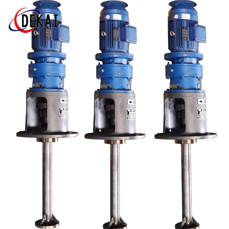 渦輪式攪拌器有較大的剪切力,可使流體微團(tuán)分散得很細(xì),適用于低粘度到中等黏度流體的混合,液液分散,液固懸浮,以及促進(jìn)良好的傳熱,傳質(zhì)和化學(xué)反應(yīng)。平直葉-剪切作用較大,屬剪切型攪拌器。彎葉-指葉片向著流動(dòng)方向彎曲,可降低功率消耗,適用于含有易碎固體顆粒的流體攪拌。當(dāng)攪拌器置于容器中攪拌低黏度液體時(shí),若葉輪轉(zhuǎn)速足夠高,液體就會(huì)在離心力的作用下涌向釜壁,使釜壁處的液體液面上升,而中間的液面下降,結(jié)構(gòu)形成了一個(gè)大漩渦,這種現(xiàn)象叫做打旋。打旋導(dǎo)致的后果一是葉輪的轉(zhuǎn)速越大,形成的旋渦就越深,液體軸向流動(dòng)效果較好,但當(dāng)物料為多相體系時(shí),還會(huì)發(fā)生分層或分離現(xiàn)象。當(dāng)液面下凹至一定深度后,葉輪的中間部位將暴露于空氣中,并吸入空氣,使被攪拌液體的表現(xiàn)密度和攪拌效率下降。打旋還會(huì)引起功率波動(dòng)和異常作用力,加劇攪拌器的振動(dòng),甚至使其無法工作。提高攪拌效果的措施是在釜內(nèi)裝設(shè)擋板,既能提高液體的湍流程度,又能使切向流動(dòng)的變化變位軸向和徑向流動(dòng),制止打旋現(xiàn)象。裝設(shè)擋板后釜內(nèi)液面下凹現(xiàn)象基本消失,釜內(nèi)液體流動(dòng)形成湍流,使攪拌效果顯著提高。攪拌器的偏心或偏斜安裝不僅可以破壞循環(huán)的對(duì)稱性有效抑制打旋現(xiàn)象,而且增加液體的湍流程度從而使攪拌效果提高。