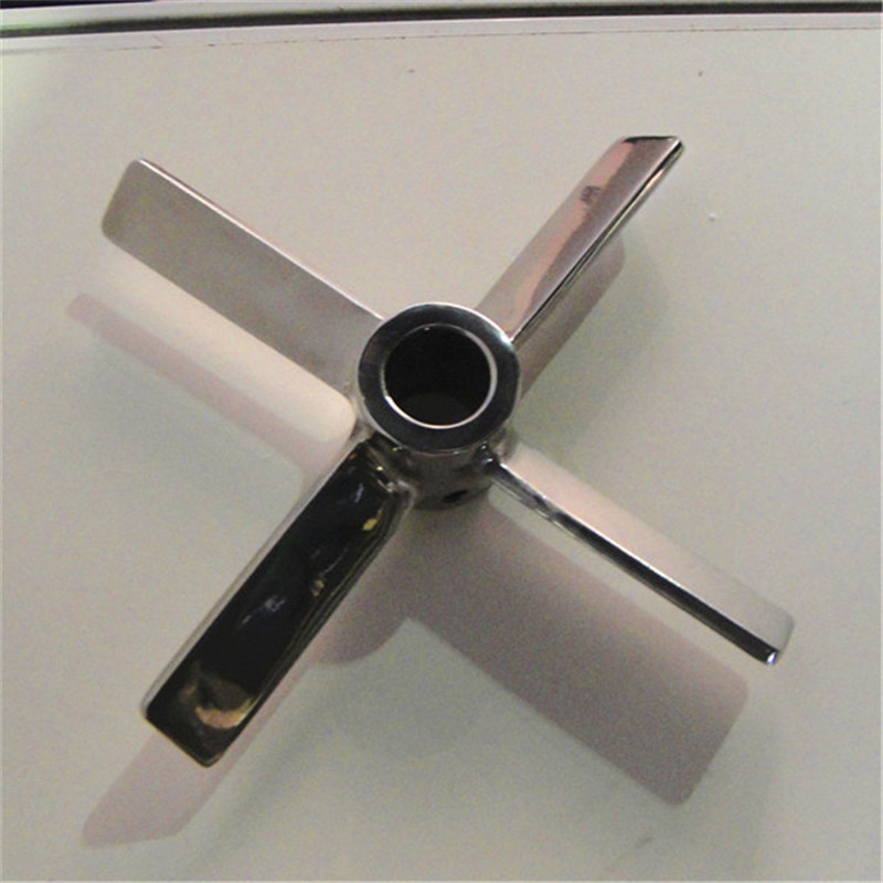 推進式攪拌器(四葉旋槳式攪拌器)推進式攪拌器容積循環速率大,在工作時能很好的使流體在隨槳葉旋轉的同時進行上下翻騰,即容易使低粘度流體流動處于湍流狀態。但由于在旋轉時,主要對流體作用軸向的推力,對流體所作用的剪力很小,這種攪拌器難以使高粘度流體處于湍流狀態,也難以使高粘度流體充分攪拌混合。推進式攪拌器的轉速一般應在60-200r/min范圍內,故這種攪拌器一般適用于低粘度流體的混合操作。
