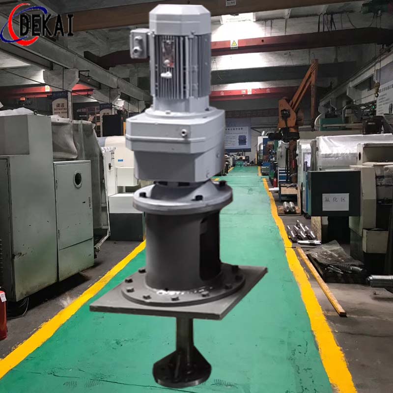 頂進式攪拌器:在立式儲罐中安裝頂部伸入式攪拌器,用來對油品或其它介質進行攪拌從而達到調和、熱傳遞、均勻化的目的。適用于煉油廠、化工、石油、瀝青、醫藥、電廠煙氣脫硫、環保等行業中各種儲罐中介質的反應、懸浮、混合、防止沉淀。圓盤渦輪式攪拌器與開啟渦輪式攪拌器,基本流型相同,同樣具有高剪切能力和較大的循環能力,區別在于中位多一圓盤,下面可以存一些氣體,使氣體分散更平穩,所以在氣體分散吸收過程中,它是很合適的。斜葉具有一傾角,有軸向分流;彎葉具有后角,排出性能好,動力消耗低;螺距既有傾角又有后角,流型和性能各有部分差異。推進式是典型的軸流型攪拌器,高排液量,低剪切性能;采用擋板或導流筒則軸向循環更強。排出性能明顯提高,因為它循環能力強,動力消耗低,在大容量均相、混合過程中應用能體現其優勢,在低粘度的液體傳熱、反應、固液比小時的懸浮、溶解等過程中應用廣泛。可調推進式的槳葉可轉動±15°,調整傾角,在試驗性的工藝過程中作用很大。可拆推進式的槳連輪轂分成三辨,組裝方便,用在需要拆成小件的場合。帶穩定環結構,可在高速運行中靠液體阻尼的作用起徑向扶正作用,一般情況下可提高?10%~20%的臨界轉速。平直葉圓盤渦輪式攪拌器徑流型攪拌器,有高的剪切力,分散能力強。循環能力較好,一般在圓盤上下形成兩股循環環流,因有圓盤的作用,能使氣體分散更平穩、均勻。特別適用于氣體的分散、吸收操作,同樣也適用于固體懸浮、傳熱、非均相反應操作。