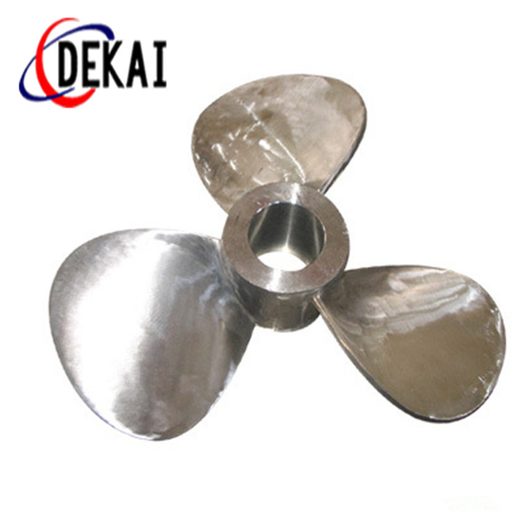 螺旋槳式攪拌器的直徑d按50、75、100、150、180、200、225、250、300、325和350毫米數列來選取。部頒標準規定這個系列的直徑為d=250毫米。鑄造的螺旋槳式攪拌器和制造具有等厚度葉片的攪拌器要求采用特殊鑄造和復雜的沖壓工藝,因此,不推薦這種型式的jiaobanqi.z流體動力性能方面,它比三葉片式攪拌器只稍微好一點點,因而應用應三葉片式攪拌器代替它。根據不同介質的物理學性質、容量、攪拌目的選擇相應的攪拌器,對促進化學反應速度、提高生產效率能起到很大的作用。螺旋槳式攪拌器適用于給水和排水工程中的混合池,反應池原水與各種藥劑的混合及反映過程的攪拌,攪拌轉數一般在30-1400r/min。攪拌器的材質一般分為很多種:不銹鋼、碳鋼、碳鋼襯膠、等等。適用于大中型污水處理廠投藥劑的溶藥攪拌。